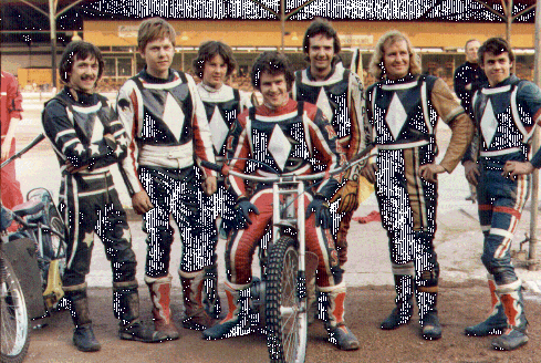 Robbie Gardner, David Bargh, Kenny Carter, Tom Owen, Robbie Blackadder, Graeme Stapleton, Rod Hunter. This team was my personal favourite of the 1970s Newcastle team line ups. None of these guys knew when they were beaten. They overtook more than any side we have ever had. What I like about the photograph is the contrast between the older lads faces and Davy and Kenny. The two kids faces are fresh and innocent looking but with their team mates to learn from both became ferocious racers, Kenny almost a world champion and David one of the best team men of his era. |